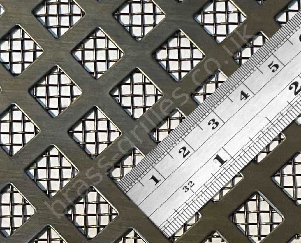 | Antique brass grille in 10mm Diamond Hole design with a Large mesh backing attached.